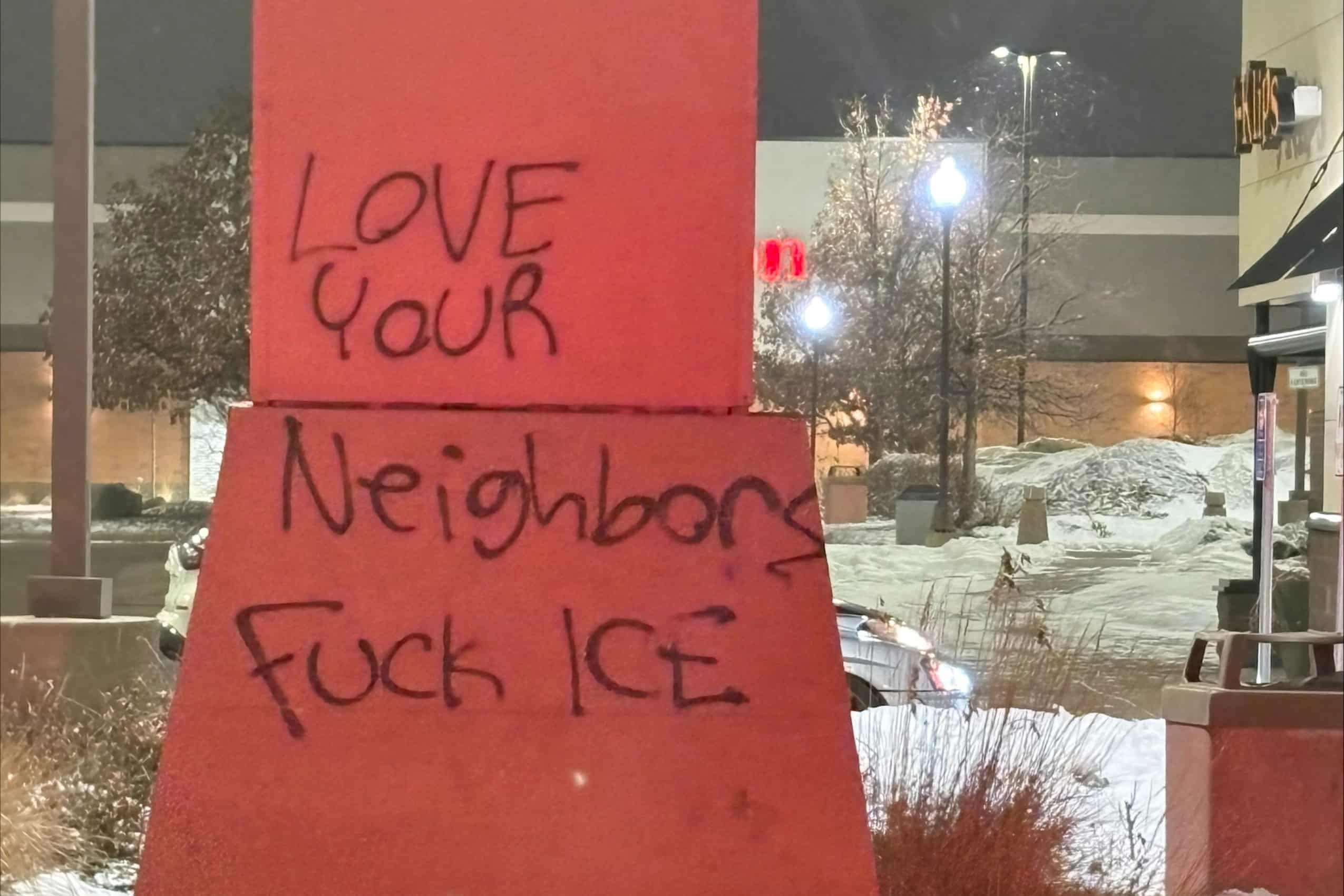 The incident followed another large protest overnight Friday to Saturday, during which about 30 people received citations related to unlawful assembly in downtown Minneapolis. A crowd of over a thousand anti-ICE protesters gathered outside the Canopy Hotel and the Depot Renaissance Hotel near South 3rd Street and Park Avenue for several hours. The latter sustained $6,000 in damage to windows and in graffiti during that incident, police said.