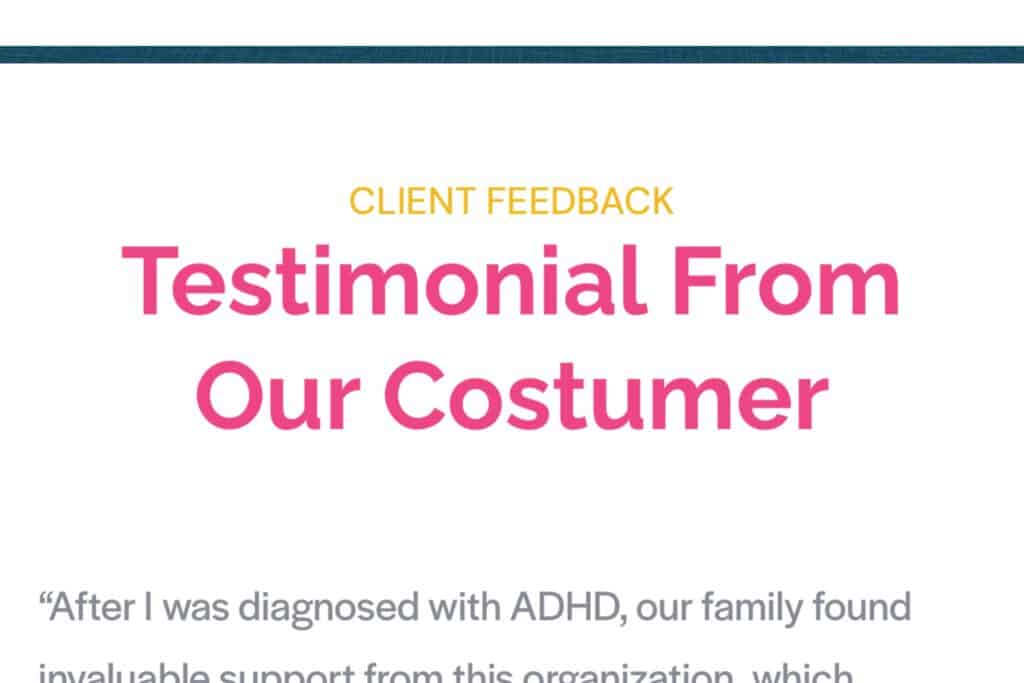 The website’s “testimonial” section also contains a misspelling, using “costumer” instead of customer.