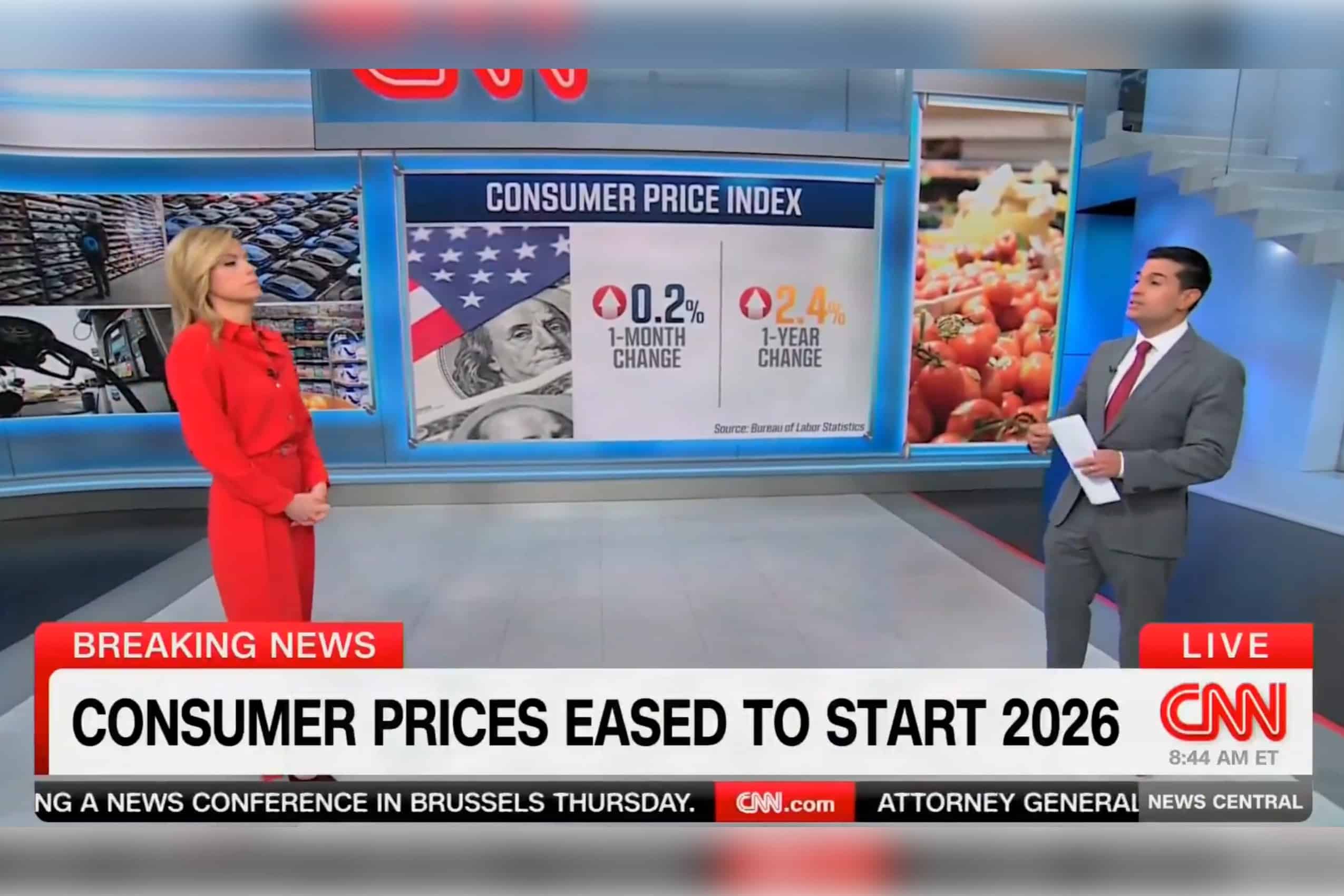 “[T]his is some encouraging news on the cost of living. Inflation took a big step in the right direction to start the year off. So, consumer prices, up by 2.4% year over year,” Egan said. “That is an improvement from 2.7% in December. That beat expectations, which were for 2.5%. In fact, this is a new eight-month low for annual inflation. Month over month, prices up by 0.2%, also a step in the right direction, also beating expectations.”