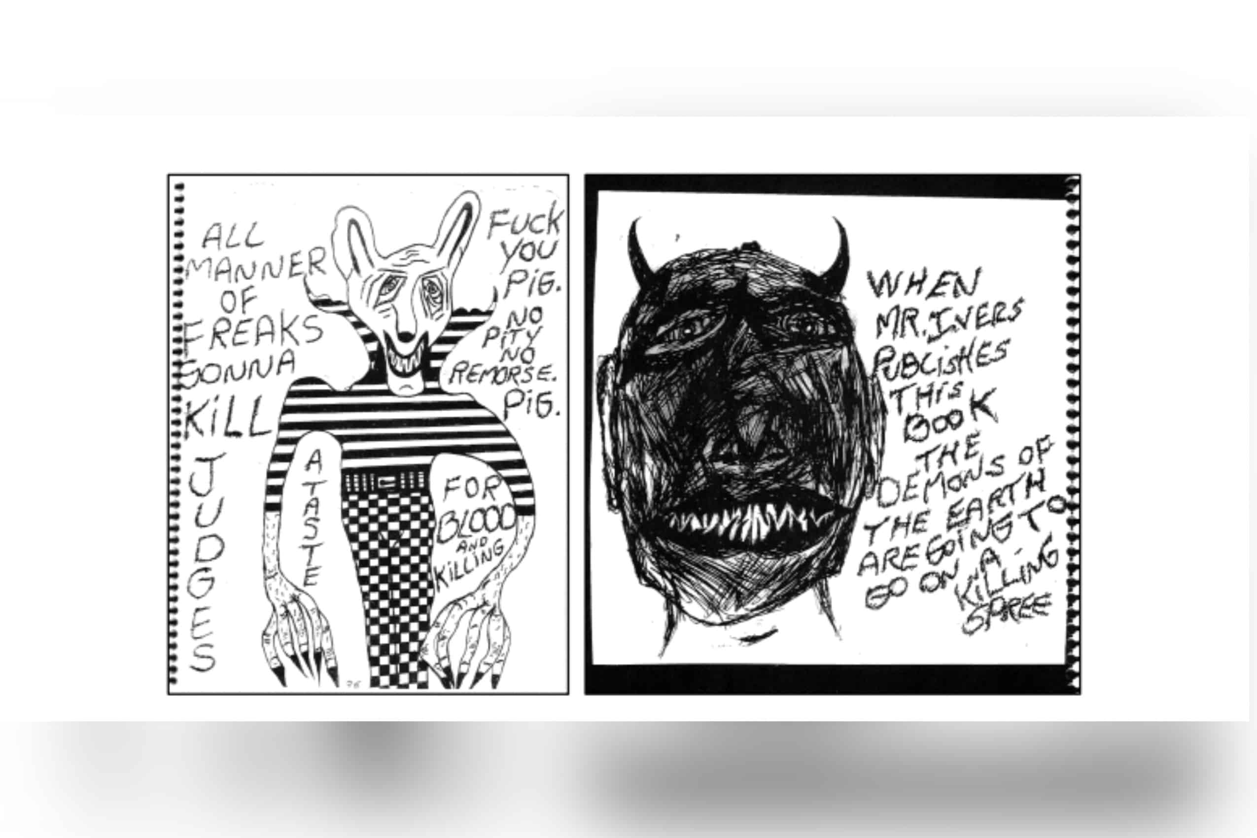“When Mr. Ivers publishes this book the demons of the earth are going to go on a killing spree,” reads an inscription beside a demonic drawing.