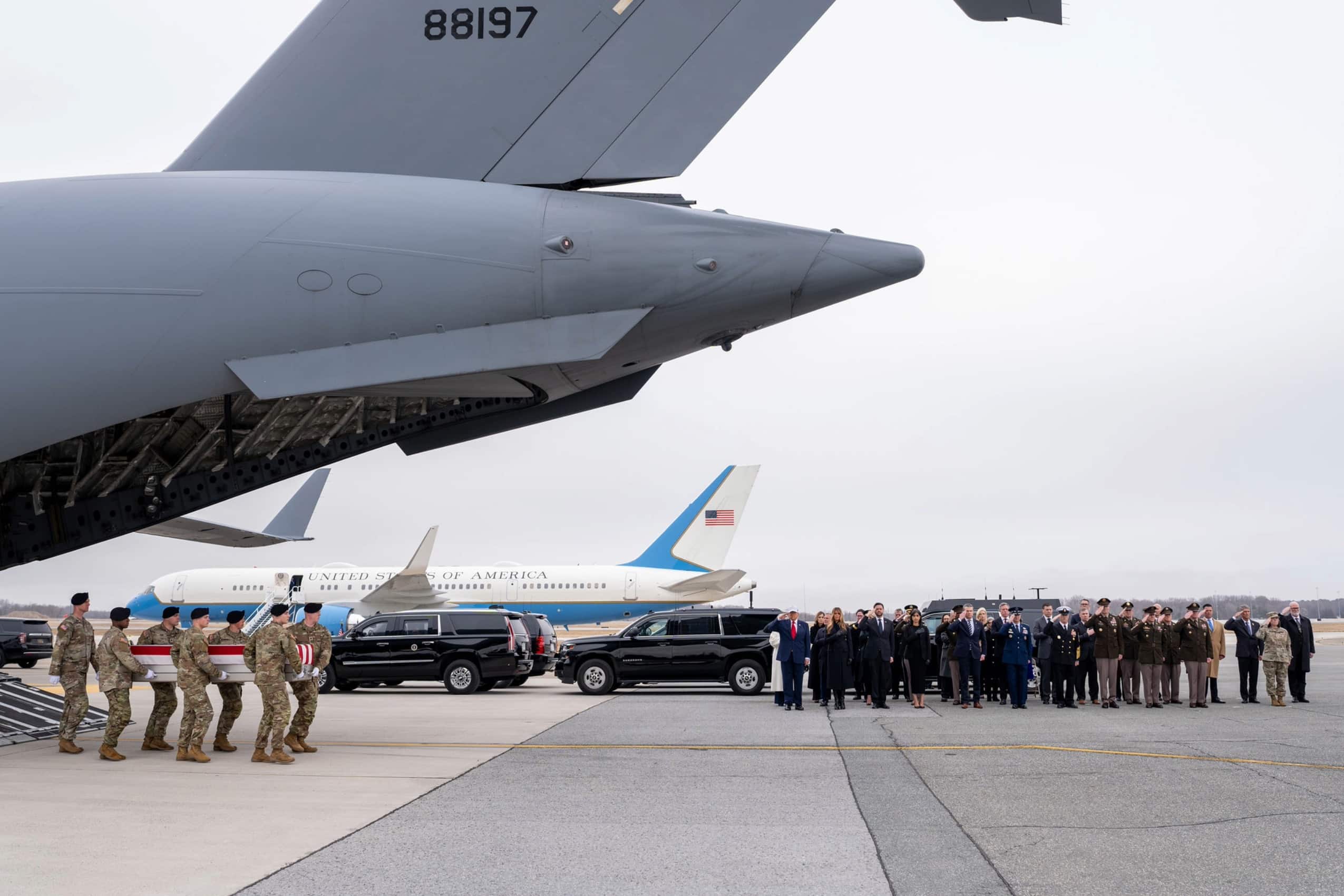 President Trump, the First Lady, @VP Vance, and the Second Lady attend the dignified transfer of six fallen American heroes who gave their lives for our nation.