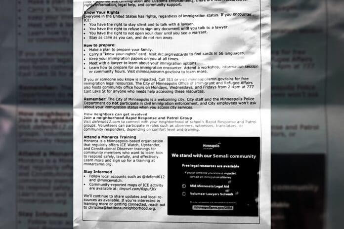 A wave of unsolicited “know your rights” letters is landing in Minneapolis mailboxes, instructing residents on how to respond to U.S. Immigration and Customs Enforcement (ICE) operations that have ramped up across the city.