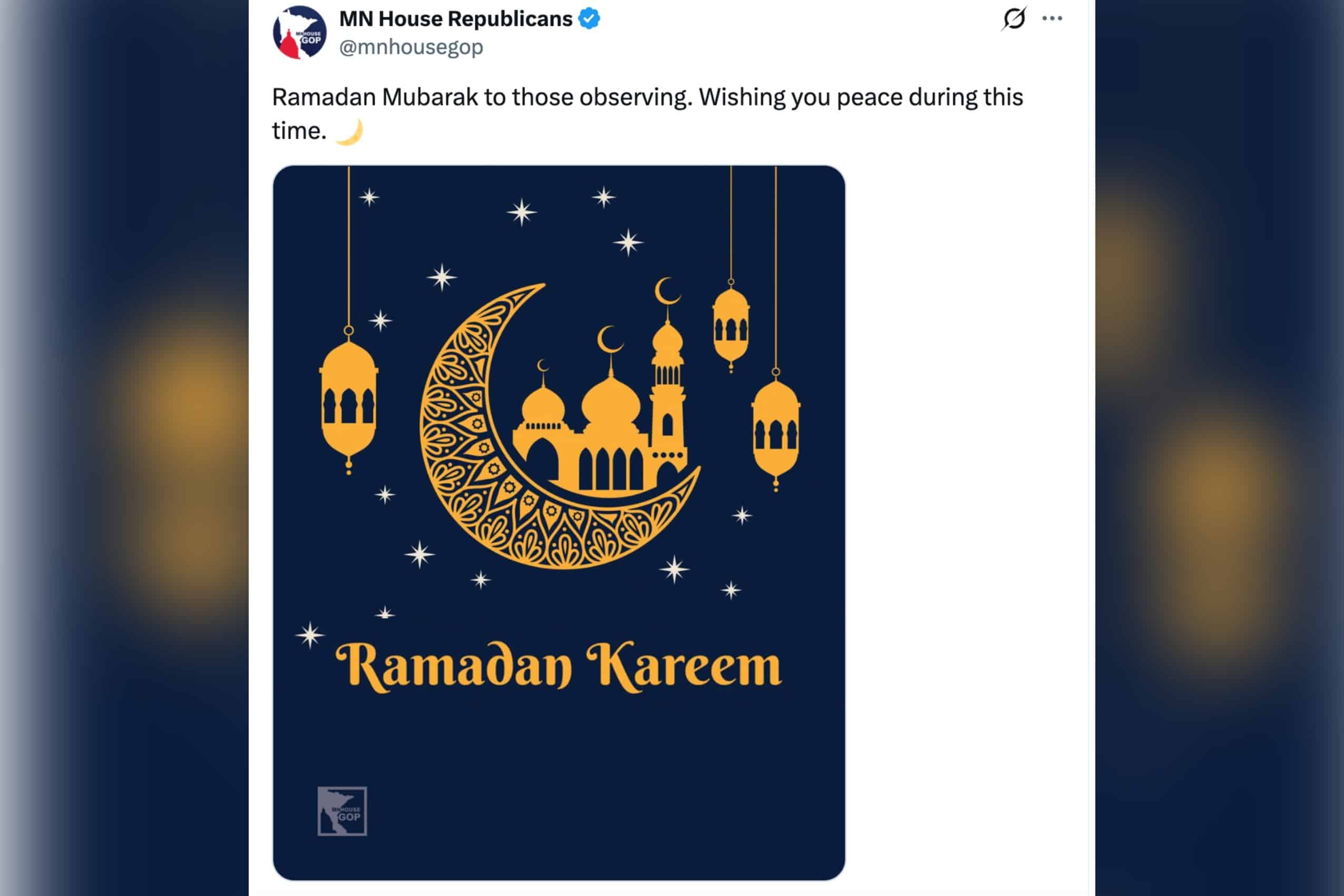 Republicans in the Minnesota House of Representatives celebrated the Islamic month of Ramadan in a social media post published Wednesday morning on X.
