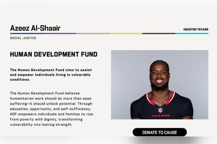 Kariye and Omar have not been accused of wrongdoing. Nor has Dar Al-Farooq or HDF. None responded to requests for comment. The NFL also did not respond to a request for comment.
