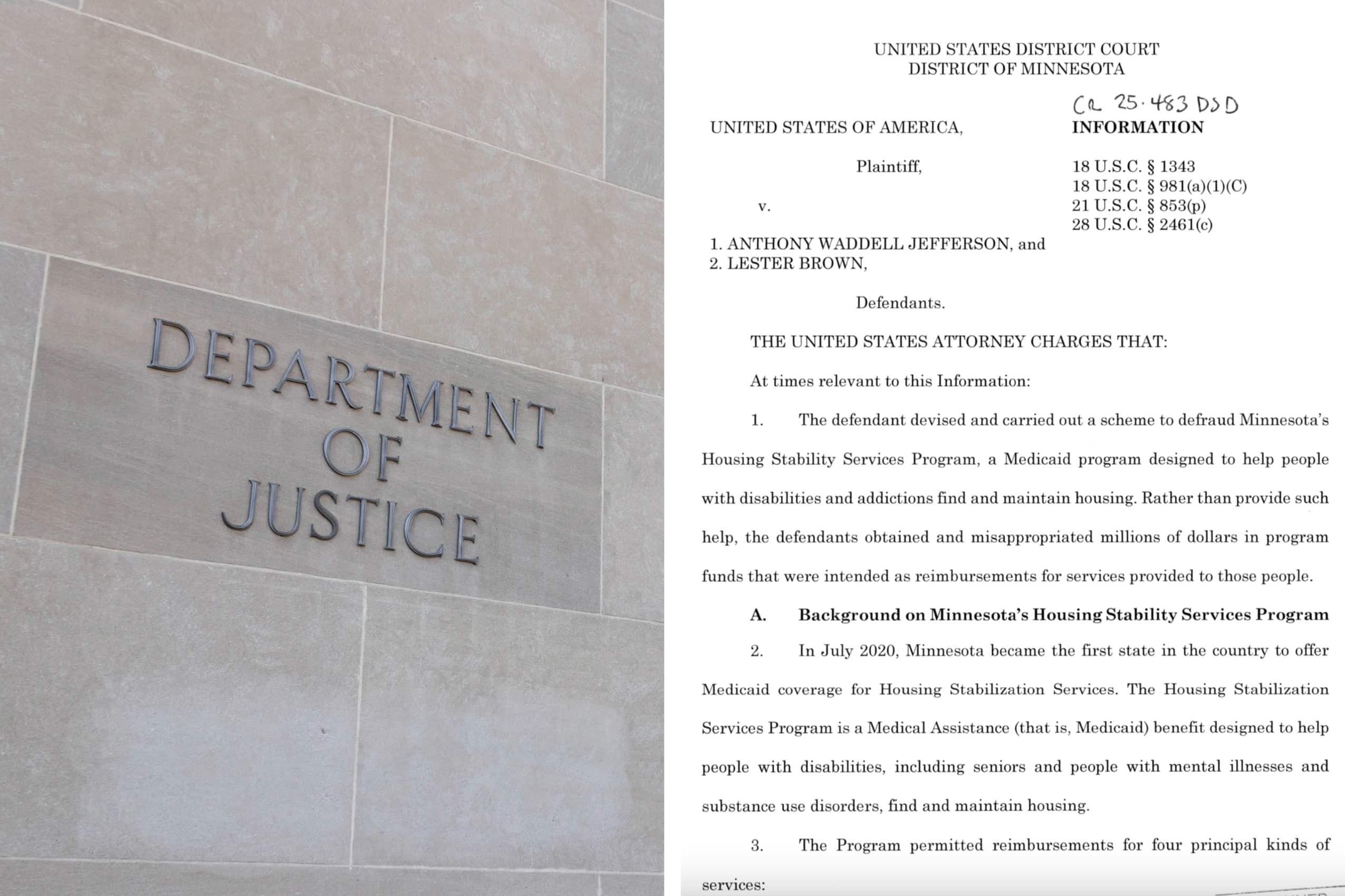 According to the criminal charges, Jefferson and Brown were living in Pennsylvania in 2021 and were told by another person that the HSS program was a good way to make money. In turn, both Jefferson and Brown allegedly registered their own companies in Minnesota.