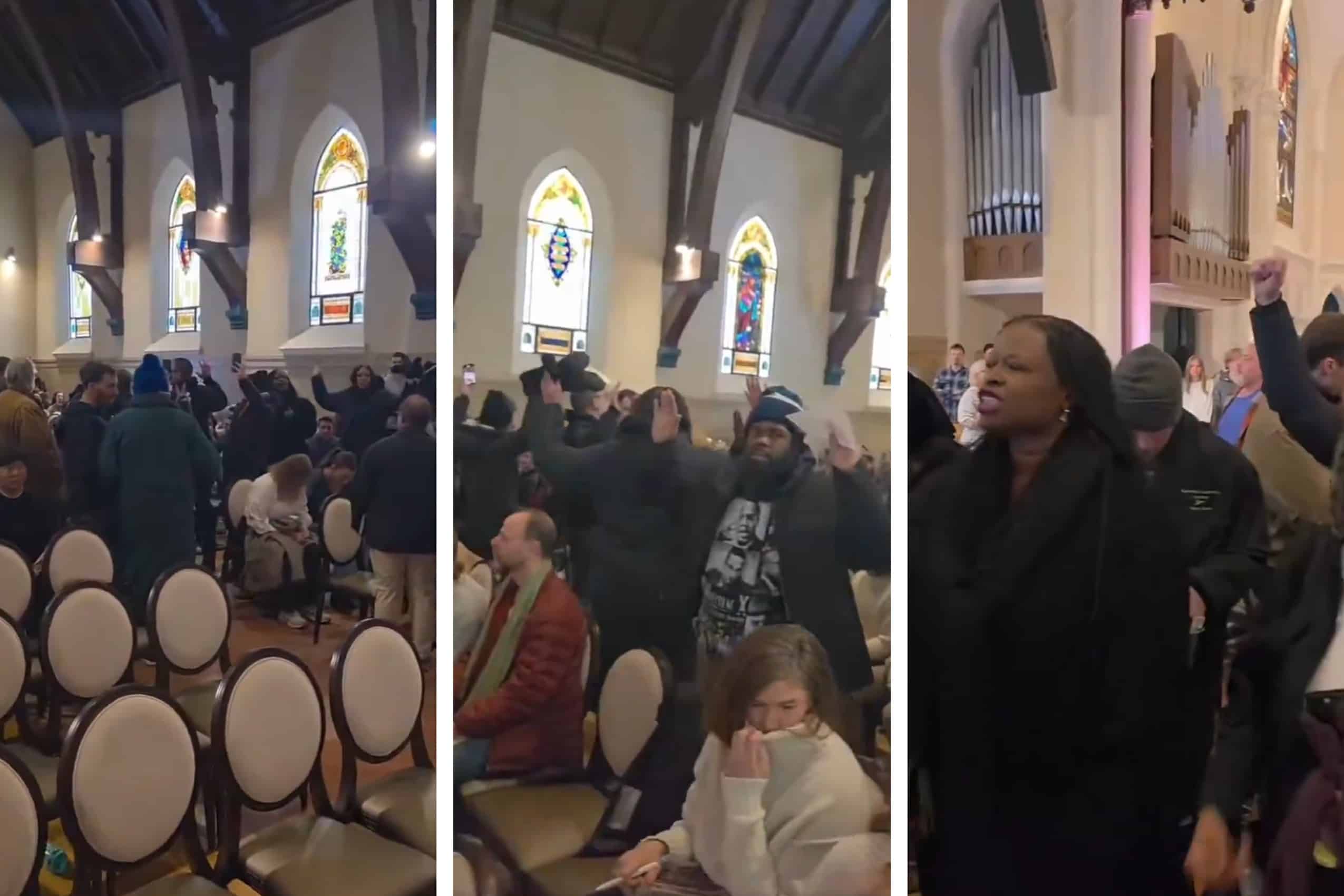 This was not a demonstration on a public sidewalk. It was not protesters holding signs outside a building. It was an intrusion into a private religious service. The congregants were prevented from worshipping, and the sanctity of the gathering was disrupted.