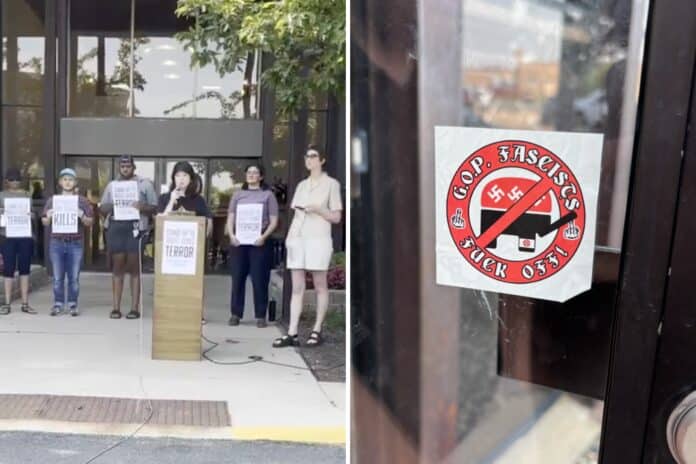 On Friday, Alex Plechash called for bipartisan condemnation of the repeated “insults and hostile actions” targeting the GOP at the office building it shares with dozens of small businesses, including several youth counseling services.