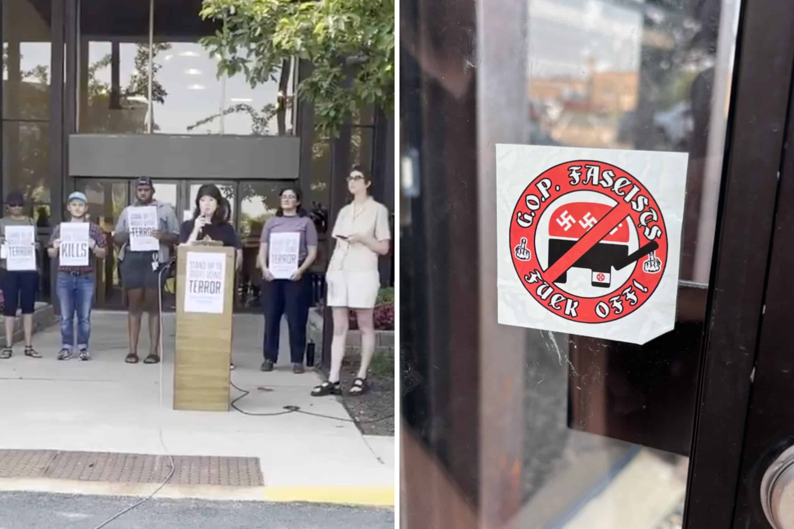 According to Plechash, the harassment has included “hateful slurs and aggressive protests outside party headquarters.”