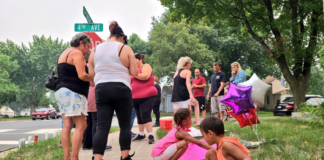 Community members gathered at the intersection of Fourth Avenue and Spencer Street in Shakopee, Minnesota, Thursday to honor the life of America Mafalda Thayer,...