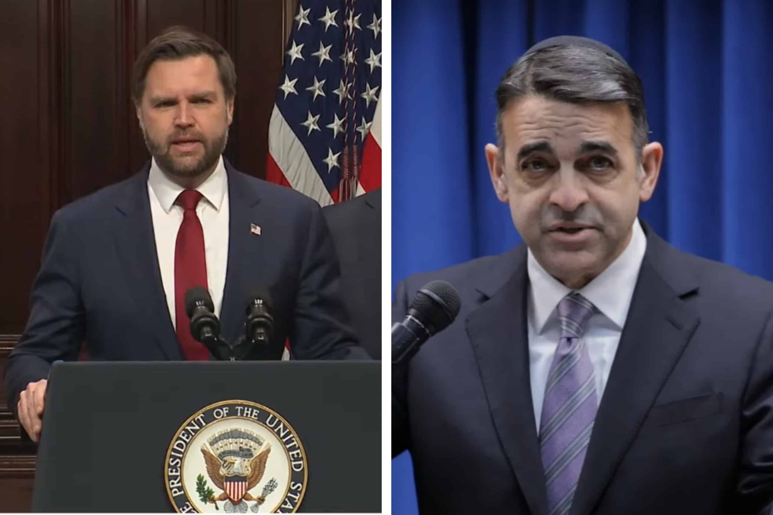 Vice President JD Vance and U.S. Attorney Daniel Rosen speak at press conferences Wednesday. (White House/Alpha News)