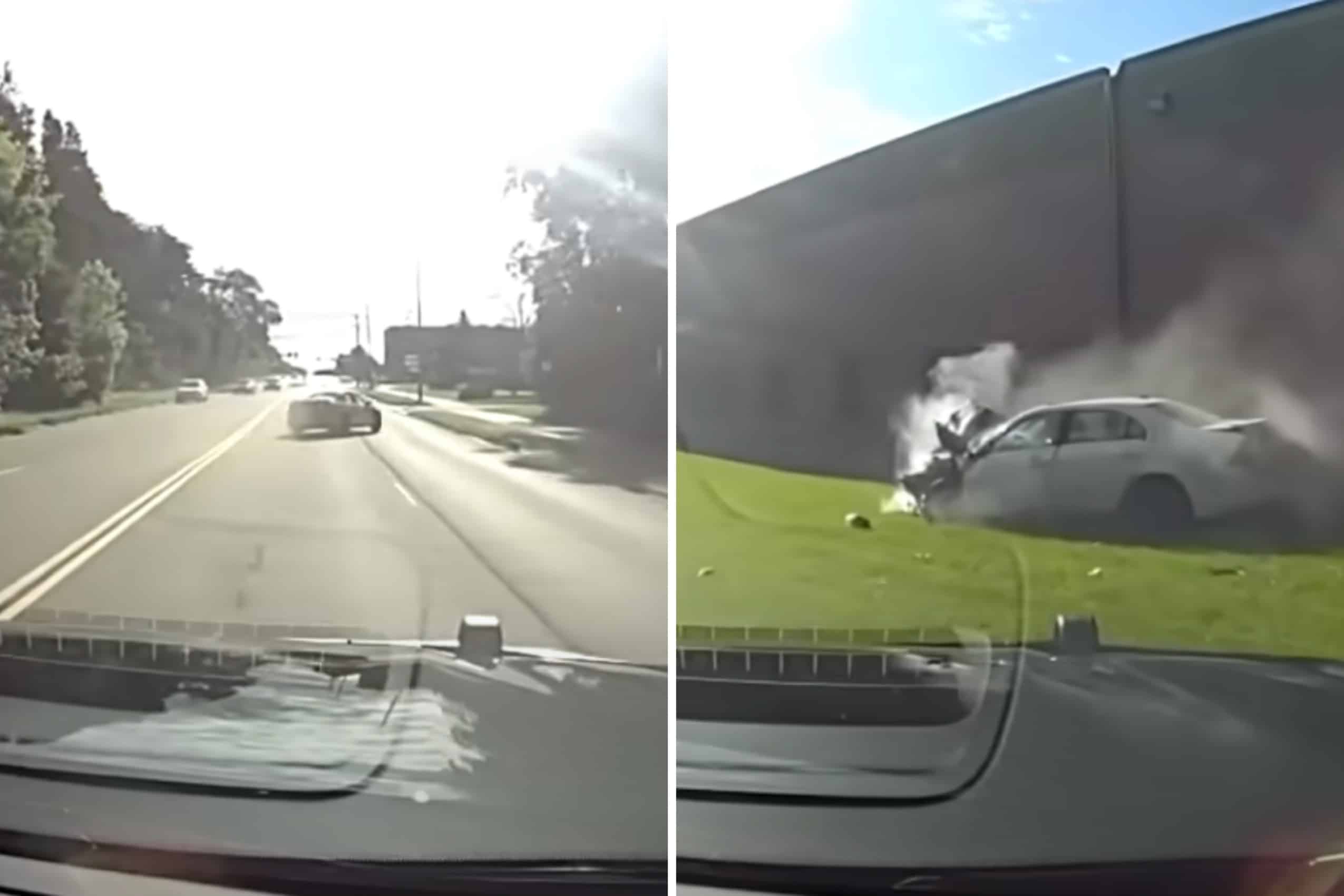 The suspect headed east on County Road E East. He briefly swerved into the oncoming lane…and then he lost control and crashed into a sign outside of a local business.